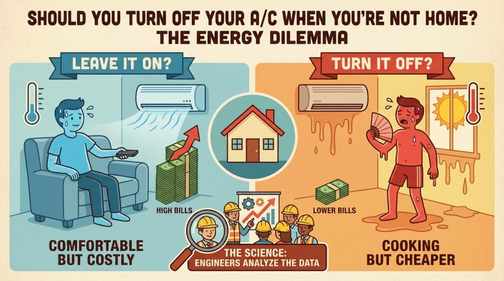 So, should you turn off the A/C while you’re out? In short: Maybe. It depends on your home, your system, and whether you’re willing to live with a bit of heat buildup in exchange for a little more money in your pocket. Like most things in life, it’s a trade-off. Do you want comfort all day, or do you want to save a bit of cash and deal with the heat when you get back? Either way, remember: Your A/C doesn’t care about your schedule — it just wants to run. You, however, should be the one in charge.